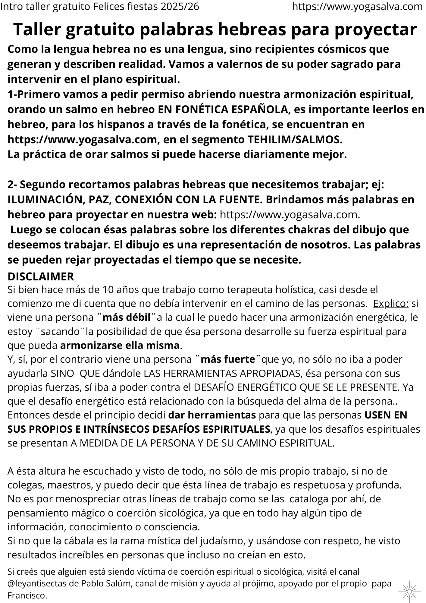 -El taller trata de lectura de fonética española, para leer en hebreo SALMOS puntuales para protección, sanación, y conexión espiritual.